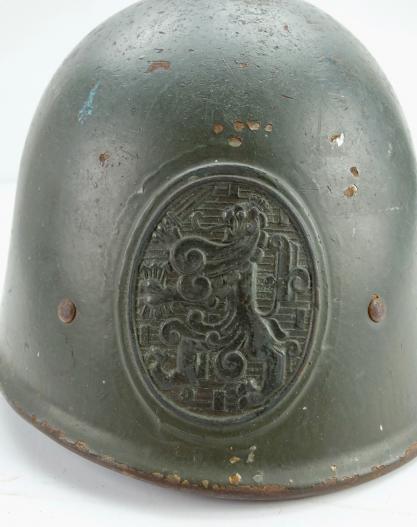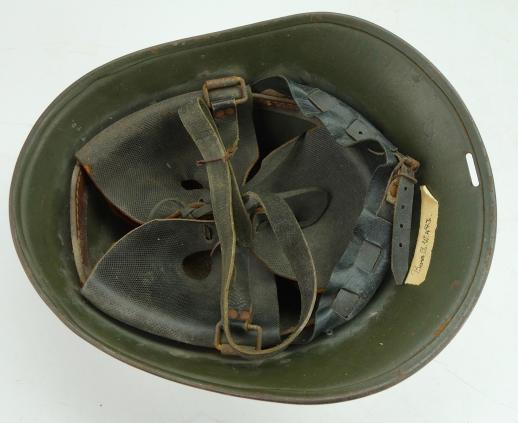 (4th Infantry Regt.) the helmet is in 98% of its original early green camo paint. Overal a very nice helmet in very good condition. The M27 is not easy to find!