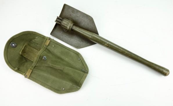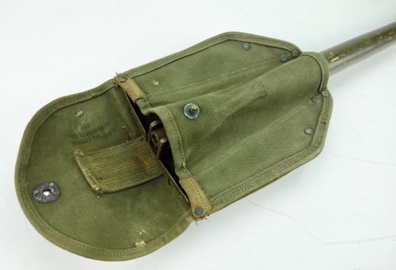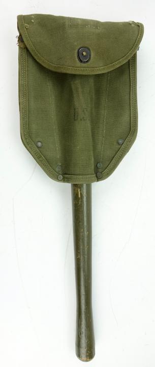 US WW2 Folding Shovel in 1th model Pouch Very nice usec US WW2 folding shovel in 1th model pouch, dated. “1944” used by all US units during WW2 In used but very good condition.