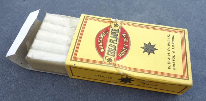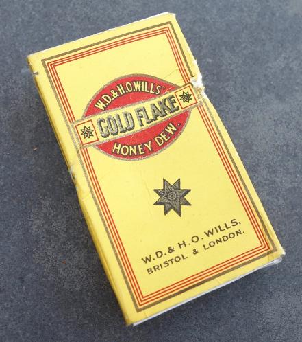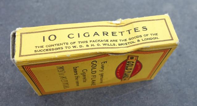 Near mint British WW2 “Gold Flake” cigarettes package with content. (10 cigarettes) Manufactured by “W.D.& J.O. Wills, Bristol & London” perfect package impossible to upgrade!