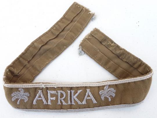 Afrika Cuff Tittle Very nice used Afrika cuff tittle. An award for Soldiers who fought in the famous German Afrika Korps, “RBN” number marked In used but very good condition.