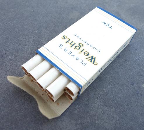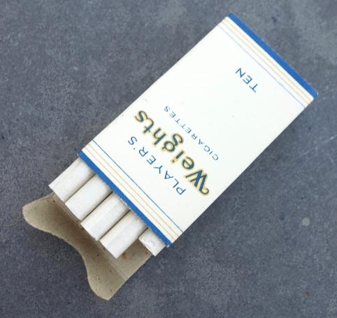 Near mint British WW2 “Players Weights” cigarettes package with content. (10 cigarettes) Manufactured by “John Player & Sons, England” perfect package impossible to upgrade!