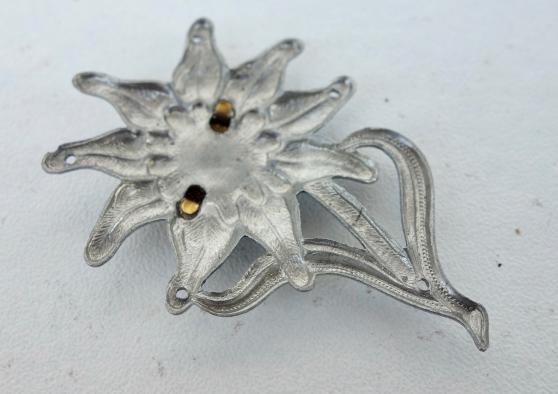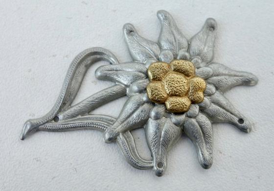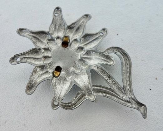 Metal Gebirgsjäger Cap Edelweiss Very nice metal Gebirsjäger edelweiss Used on M43 caps. In very good condition.