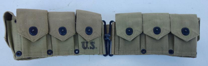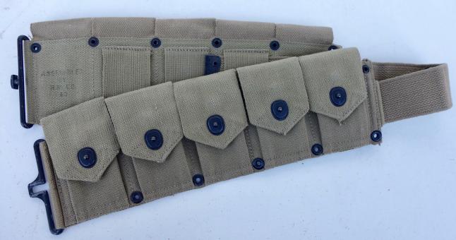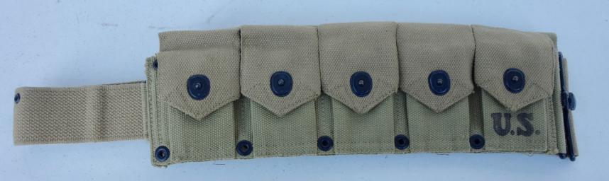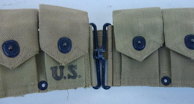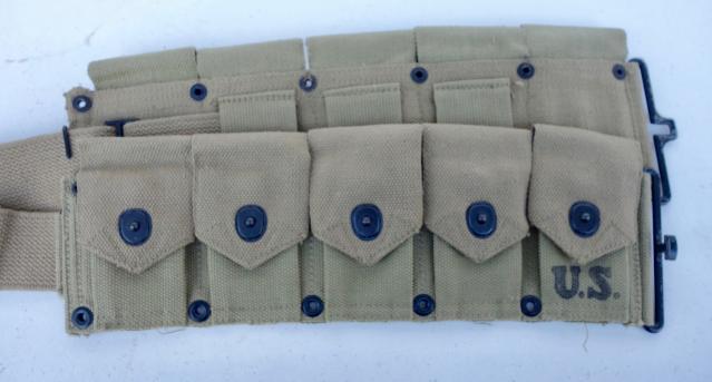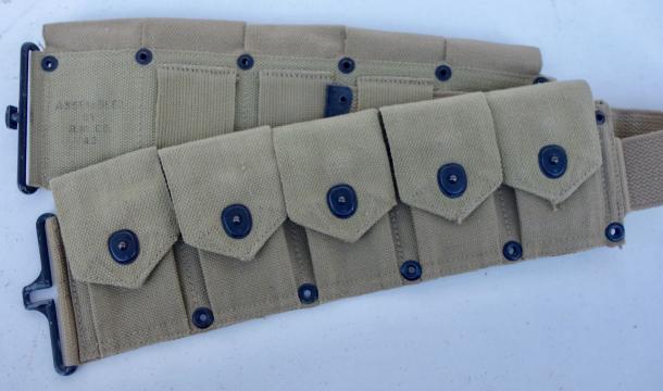US WW2 Garand Belt Very nice light used US WW2 Garand belt, maker marked and dated “1942” would holt 10 clips with 8 rounds 30.06 Garand ammunition In very good condion.