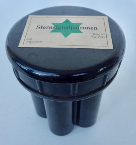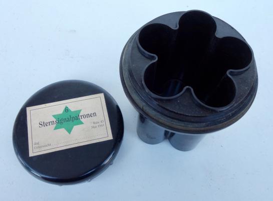 "Sternsignalpatronen" the container has nice bakelite markings and original paper label. In near mint condition.