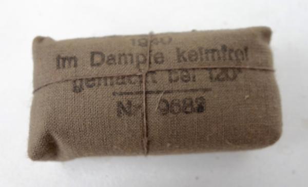Wehrmacht Wound Bandage 1940 Nice mint Wehrmacht wound bandage. Would be one in the inside pocked of every Wehrmacht combat tunic, “1940” dated In mint condition.