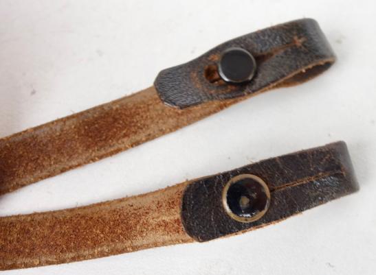 Wehrmacht Leather Binoculars Strap Nice used leather Wehrmacht binoculars strap complete with both buttons. In good condition.
