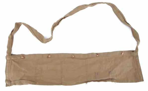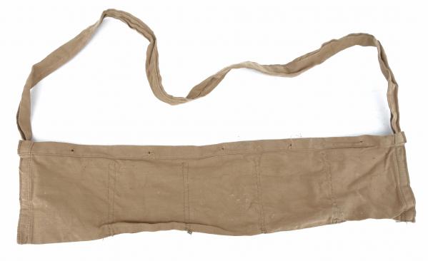 This bandoleer would hold 10 stripper clips with 5 rounds of Cal. 303 British “Lee Enfield”