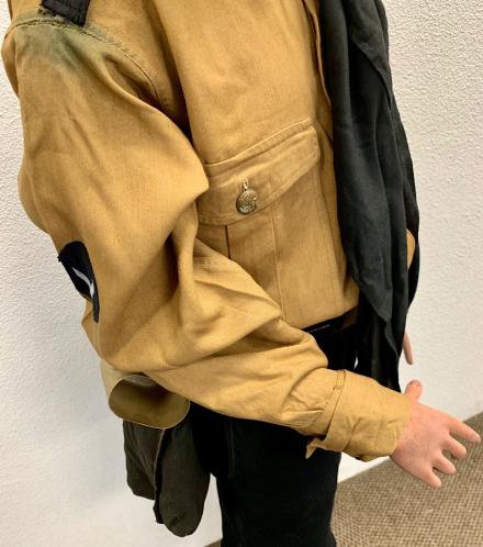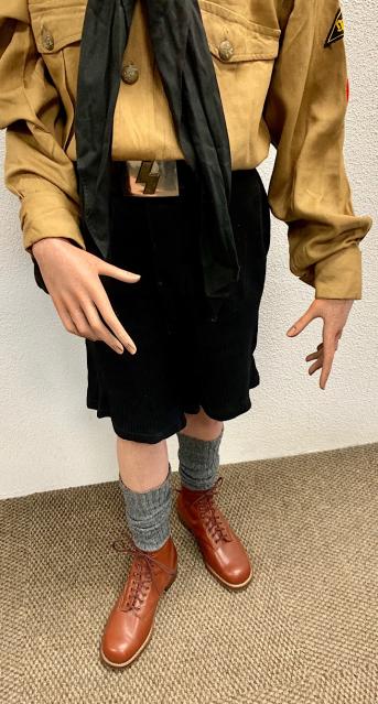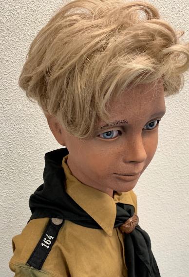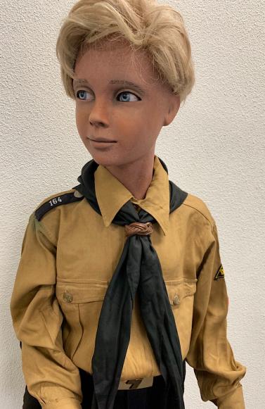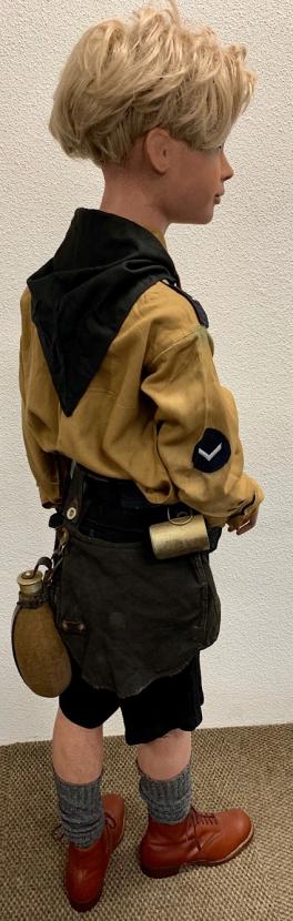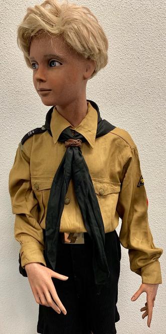 custom painted mannequin by artist “Roel Brink” with very nice details as a little scrape wound on his leg. Complete with DJV shirt with all its original insignia, the hard to find shorts, socks, low boots, scarve and knot, belt and buckle, breadbag and canteen and drinking cup! All in very nice and very good condition.