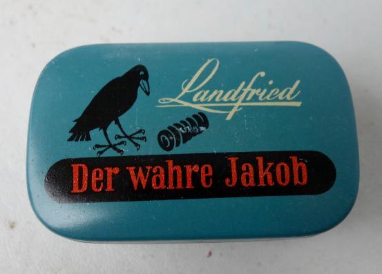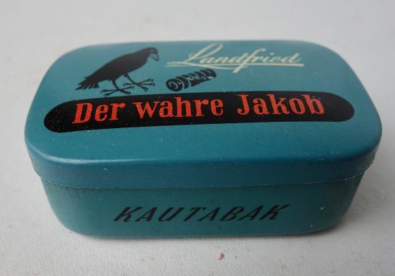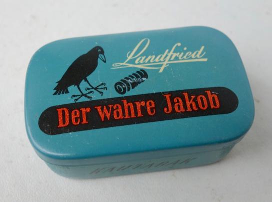 From the brand "Landfried, Der Ware Jakob" very nice decorative metal can, perfect for a personel item display. In very good condition.