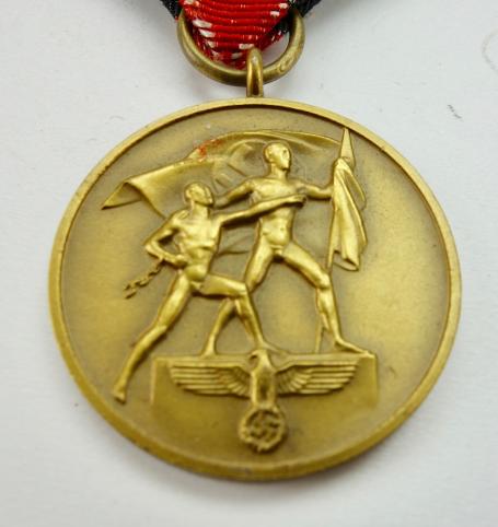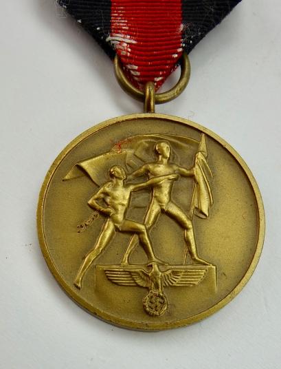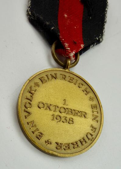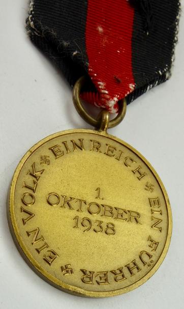 The Commemorative Medal of 1 October 1938 was the second of the "Anschluss" (Annexation), medal series and was introduced on 18 October 1938, for award to civilians and military personnel who participated in the "return" of the Sudetenland to Germany" with its original ribbon and in very good condition.