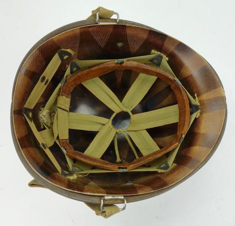 Mint US WW2 swivel bail front seam helmet with liner.