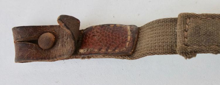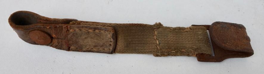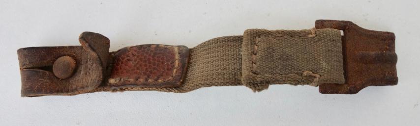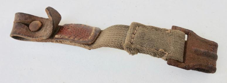 Wehrmacht M31/28 Gasmask Cannister Short Strap Nice short canvas strap with original aluminium button. Unmarked! In nice used condition.