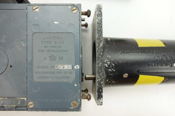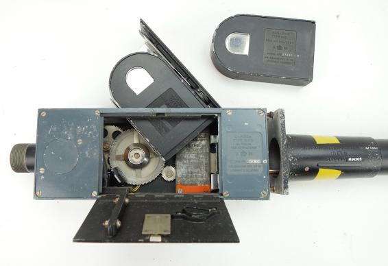 Very nice British (RAF) “Royal Air Force” G45 Gun Camera, which was used to film the kil of an enemy airplane. The camera started to film at the same time automaticly as the Spitfire pilot used the fire button.