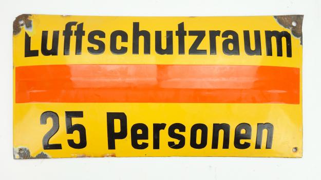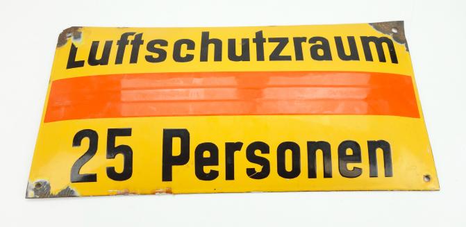 Enamel Wall Sign Luftschutzraum 25 personen Very nice original enamel wall sign “Luftschutzraum” (Air raid shelter, for 25 persons) in used but very good condition.