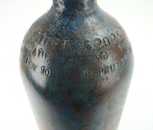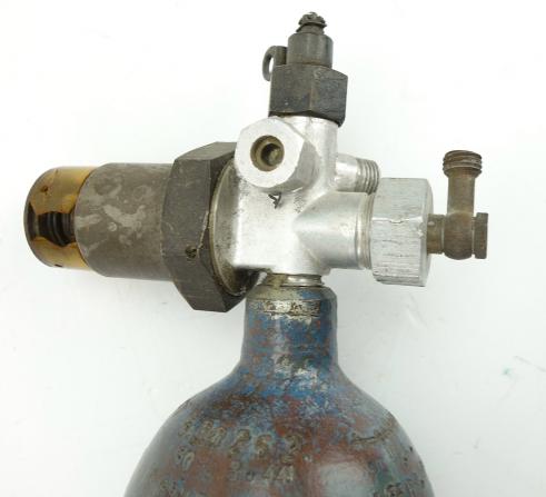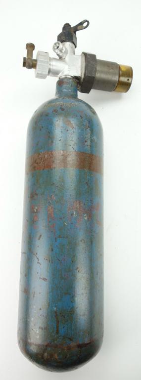 The best and most complete we ever found Luftwaffe Oxygen Bottle for use in Flight, nicely marked and complete with top part which is always gone.