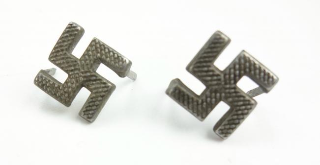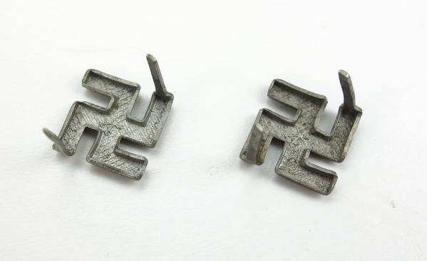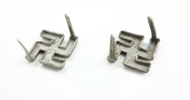 Third Reich Swastika Cyphers Nice set of original metal made Third Reich swastika cyphers. In very good condition. Probably for a political Third Reich uniform.