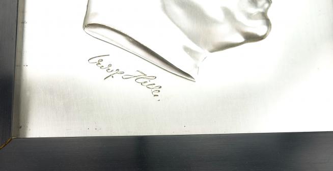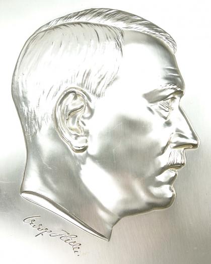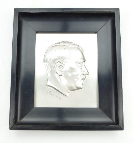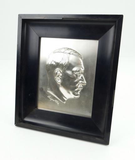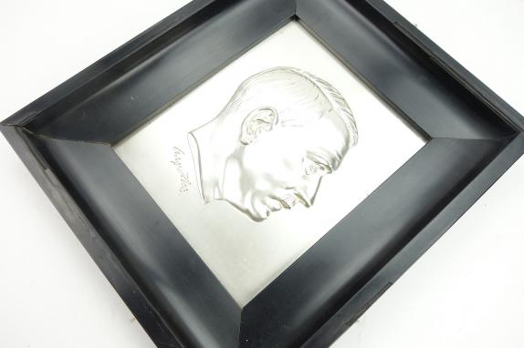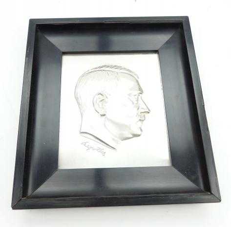 Very nice high quality made metal “Adolf Hitler” plaque in frame.