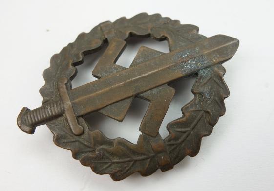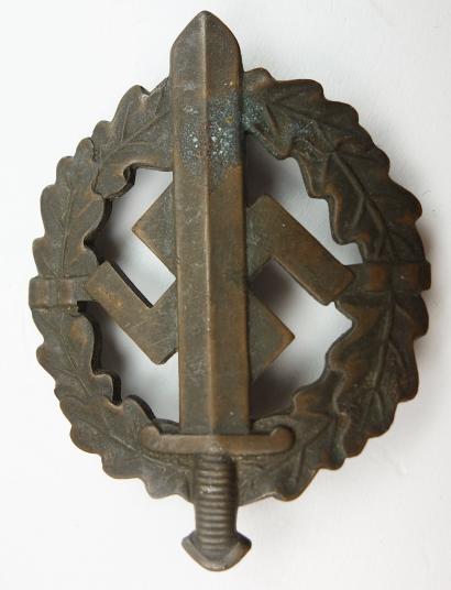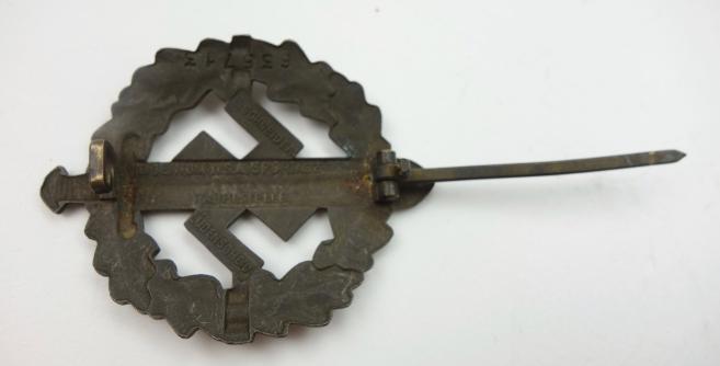 Nice numbered SA sports badge in bronze, made by “E.Sneider, Lüdenscheid” and marked under the needle “Eigentum d. SA Sport Abzeichen Hauptstelle”