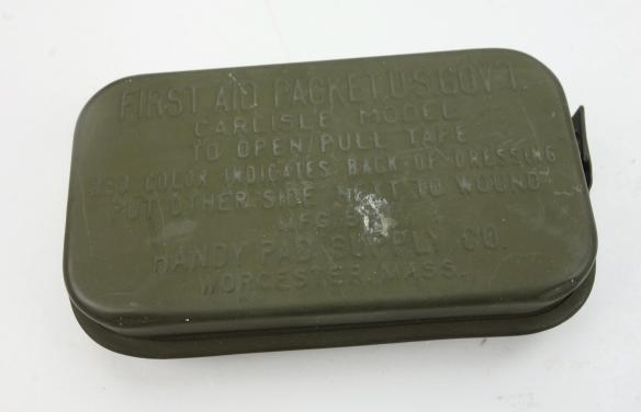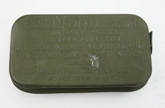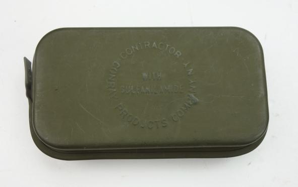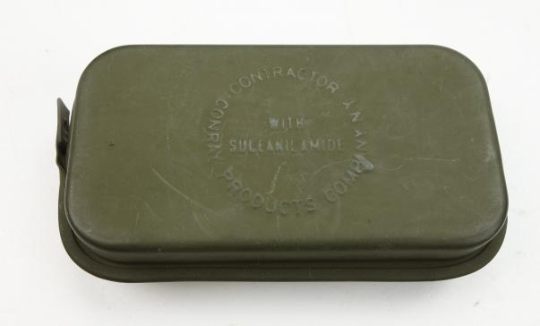US WW2 First Aid Kit Mint Carlisle model US WW2 first aid kit. Metal can with wound bandage and with “Sulfamilamide” to stop bleeding. Made by “Conray Products NY. NY. USA” in mint condition.