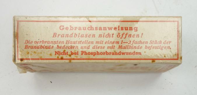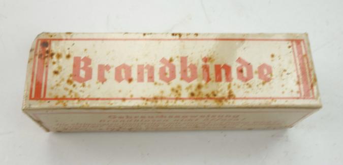 Wehrmacht Brandbinde Package Nice unopened Wehrmacht “Brandbinde” Package (With content) Bandage for burn wounds in original clipboard package in good condition.