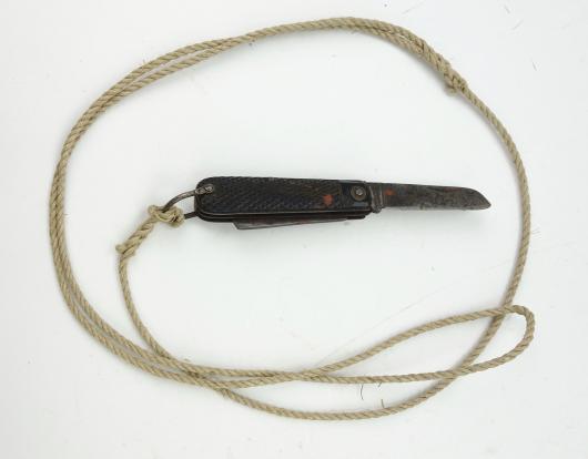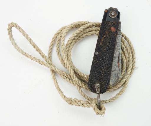 British WW2 Pocket Knife with original Knife Cord Made by “Rowbotham, (Sheffield) Ltd.” Knife in used but good condition and knife cord in perfect condition.