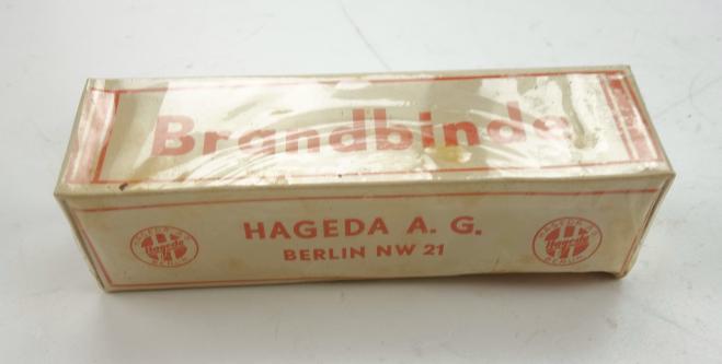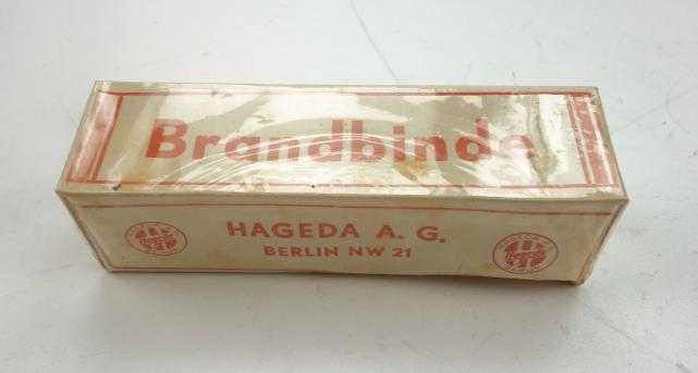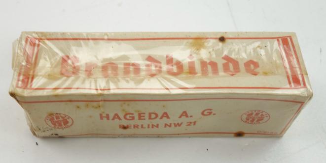 Wehrmacht Brandbinde Package Nice unopened Wehrmacht “Brandbinde” Package (With content) Bandage for burn wounds in original clipboard package in good condition.