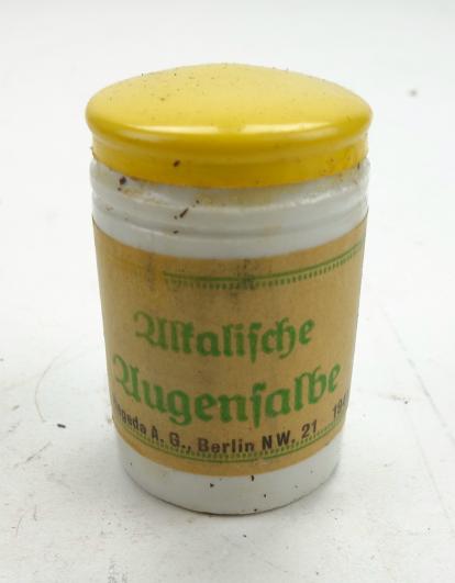 Wehrmacht Medical Eye Ointment Nice porcelain pot with content, Wehrmacht medical eye ointment. “Augensalbe” in used but good condition.