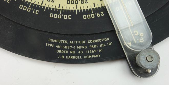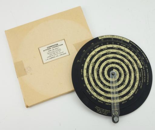USAAF WW2 Computer Altitude Correction Made by “J.B. Carroll, Company, Chicago Illinois, USA” type “AN-5837-1” nice USAAF Altitude Computer in original clipboard box. Impossible to upgrade!