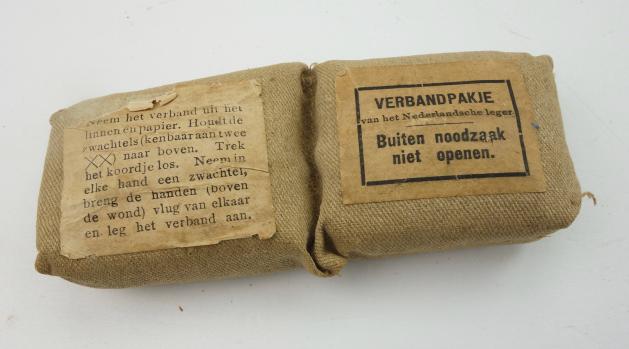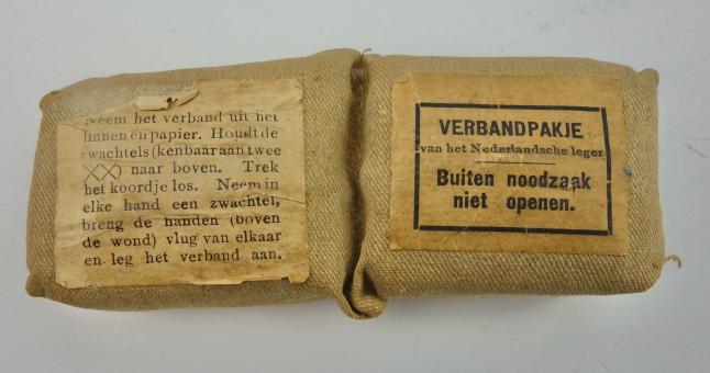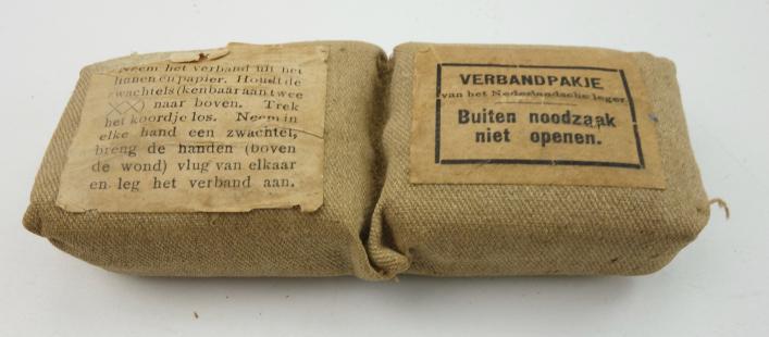 Dutch First Aid Wound Bandage Nice used original Dutch wound bandage which belongs in a special inside pocket of the tunic. With its original paper label. In used but good condition.