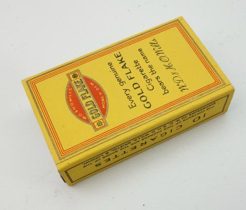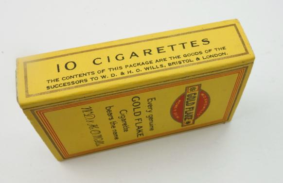 Near mint British WW2 “Gold Flake” cigarettes package with content. (10 cigarettes) Manufactured by “W.D.& J.O. Wills, Bristol & London” perfect package impossible to upgrade!