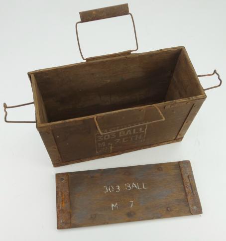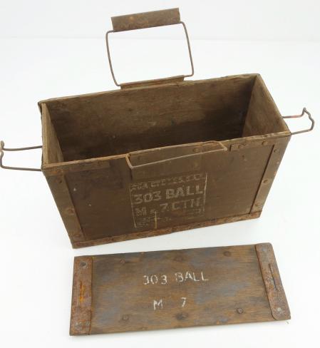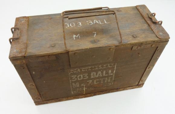 British WW2 wooden 303 Ammo Box Nice used British WW2 wooden 303 Ammo Box “1945” dated. Left behind in the Netherlands. With original wooden lid. In used but good condition.