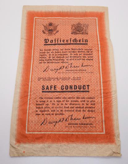 Nice rare version Allied Safe Conduct small version for Artillery (fired with big bundles in a special Artillery grenade) in very good condition. Hard to find in the small Artillery version!