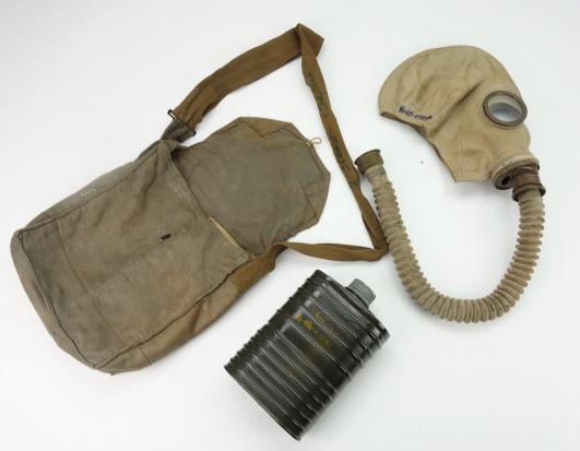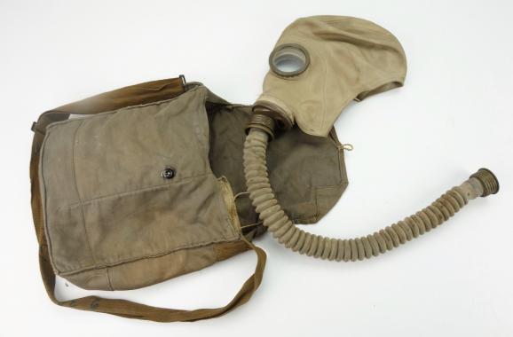 Soviet WW2 Gasmask Very nice and rare to find WW2 Soviet gasmask in its original cloth gasmask bag, Mask and bag both wartime dated. In used but very good condition, Hard to find!!!