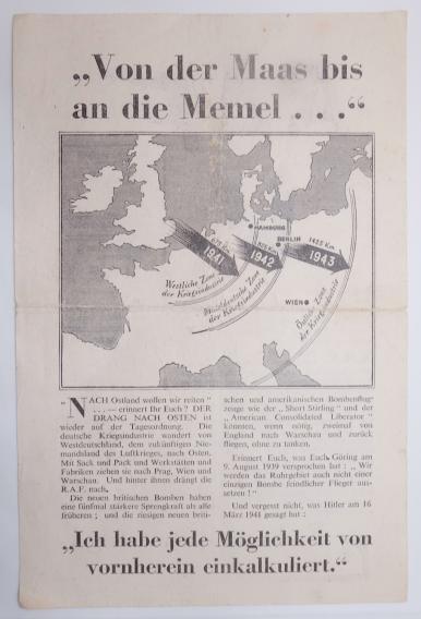 Allied Propaganda Flyer About Bombing Germany Nice used Allied Propaganda Flyer About Bombing Germany “Von der Maas bis an der Memel” In used but good condition.