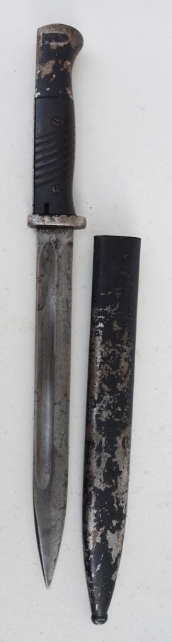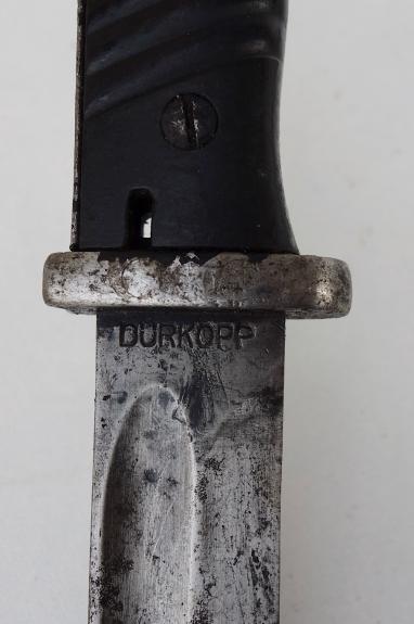 K98 Bajonet Nice used K98 Bajonet Nicely maker marked “Dürkopp” (rare maker) In original scabbard in used but good condition.