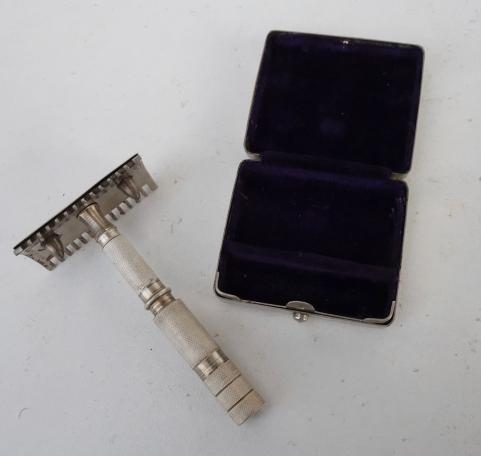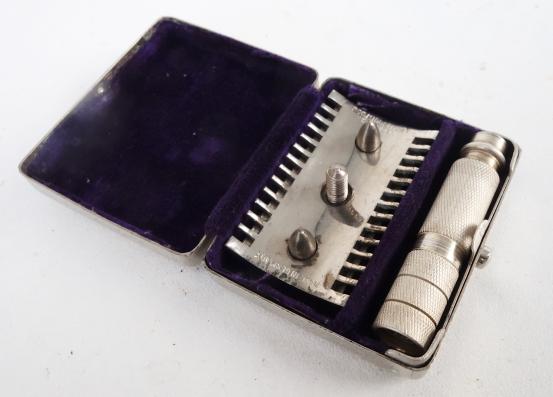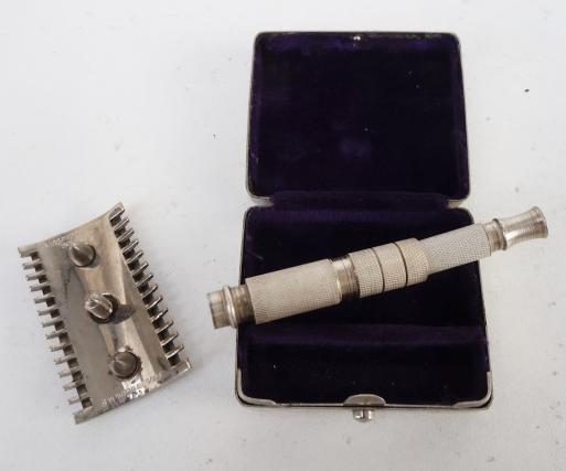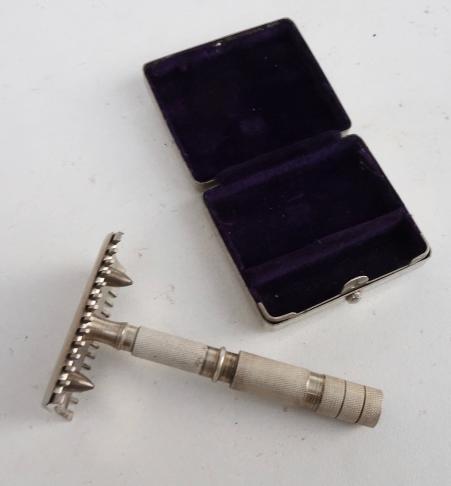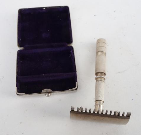 Wehrmacht era Shaving Razor Very nice Wehrmacht era shaving razor Small metal box with shaving razor Made by “Rob Middeldorf Solingen” In very good condition.
