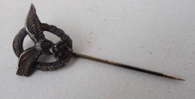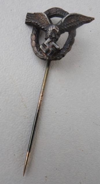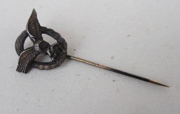 Luftwaffe Flugzeugfuhrer Abzeichen Stickpin Very nice stickpin with a miniature Luftwaffe Flugzeugführer Abzeichen (Pilots Badge) In very good condition!