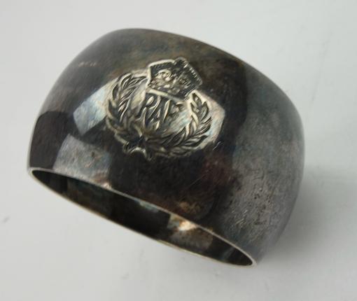 British WW2 RAF Messroom Silver Napkin Ring Very nice decorative British WW2 RAF Messroom Silver Napkin Ring nicely marked. In very good condition.