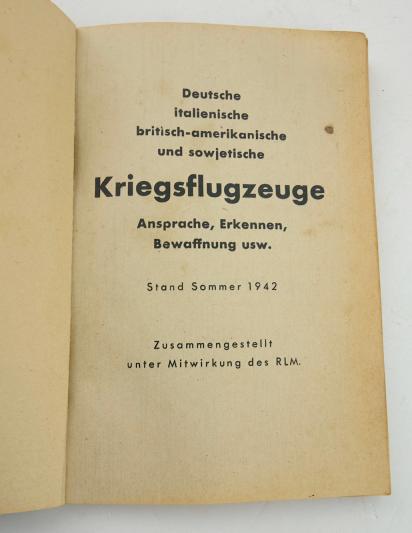 Reichs Luftschutz Bund RLB Aircraft Recognition Booklet. To recognize German, Italian, British, American and Russian Aircraft.