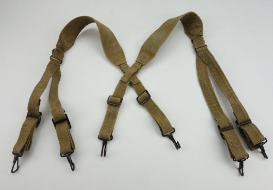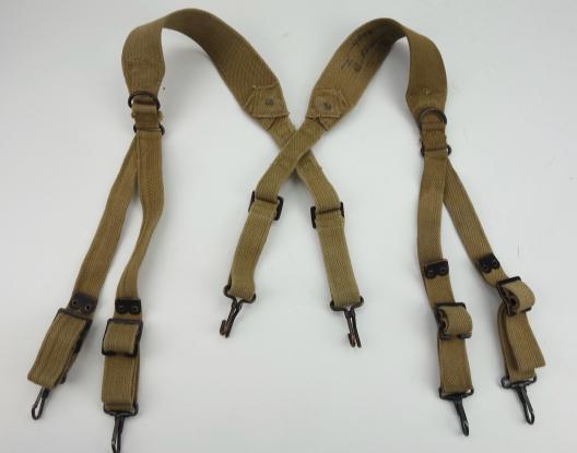 US WW2 Suspenders British made Very nice US WW2 suspenders, maker marked “BHGL” and dated “1944” In near mint condition.