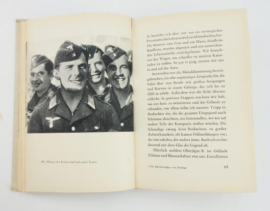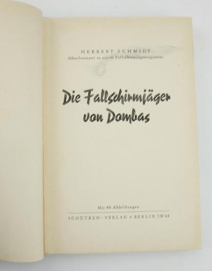 German Wartime Book Fallschirmjäger von Dombas Very nice German Wartime Book Fallschirmjäger von Dombas, written by “Herbert Schmidt” With personal notice! Nice book in very good condition.