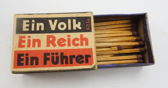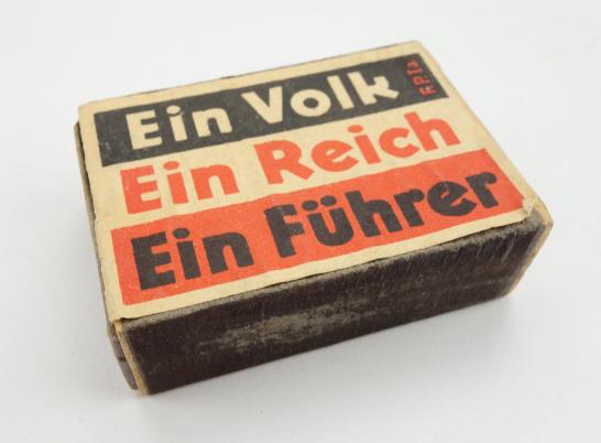 Third Reich Match Box “Ein Volk, Ein Reich, Ein Fuhrer” Nice Third Reich match box with matches in very good condition.
