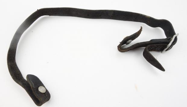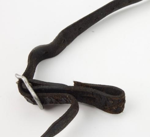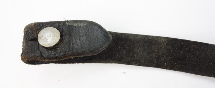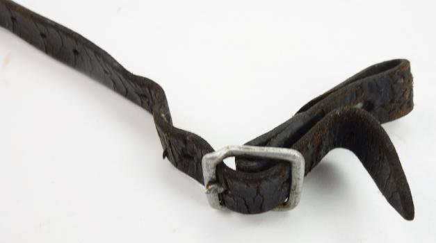 Salty early Wehrmacht leather Combat Helmet Strap Used early Wehrmacht combat helmet strap with early aluminium buckle in used salty condition.