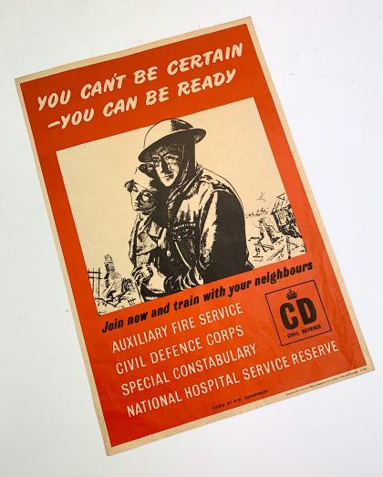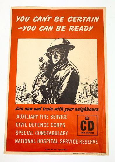 British Civil Defense Poster Very nice used British Civil Defense Poster Decorative poster to get more volunteers to join the Civil Defense. In very good condition.
