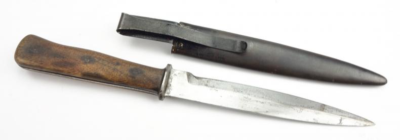 Wehrmacht Näkampfmesser Very nice used Wehrmacht close combat knife in its original steel scabbard. Used by all combat units of the Wehrmacht (Heer, Luftwaffe, WaffenSS, Kriegsmarine” in used but good condition.