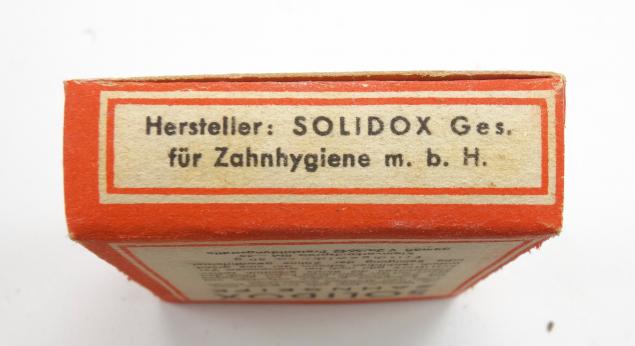 German Tooth Paste in original carton box "Solidox" Nice carton box with original content "Solidox, Zahnzeife"