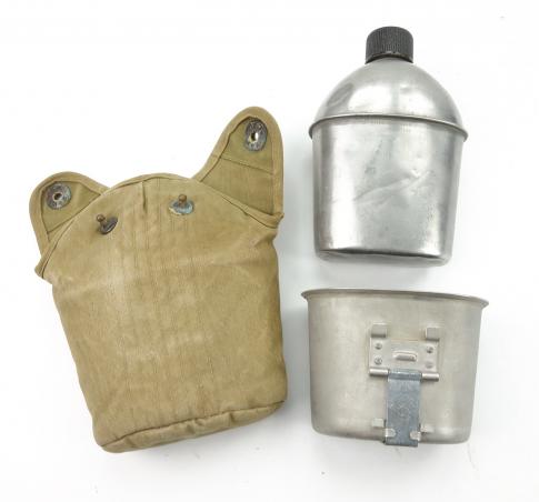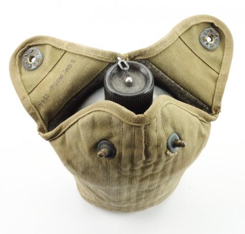 US WW2 Canteen Nice used US WW2 canteen with drinking cup both cup and canteen “1944” dated. In original canvas cover. All in used but good condition.