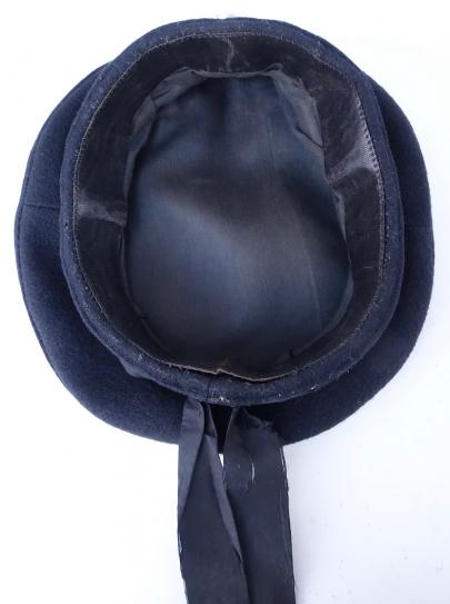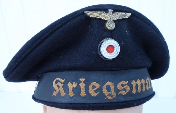 (Naval cap) with nice metal Kriegsmarine eagle and cocade. “Kriegsmarine” as motto.