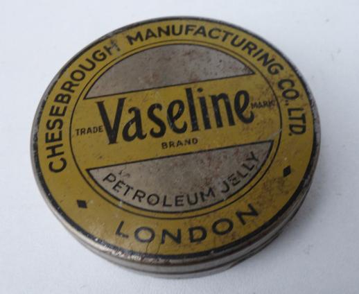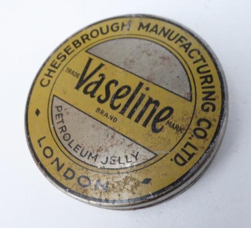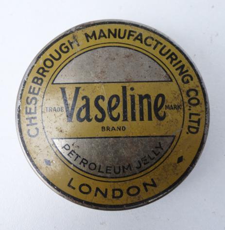 British WW2 Vaseline Can Very nice decorative British metal can “Vaseline” Made by “Chesebrough Manufactoring Co. Ltd., London” nice can with content. In very good condition.