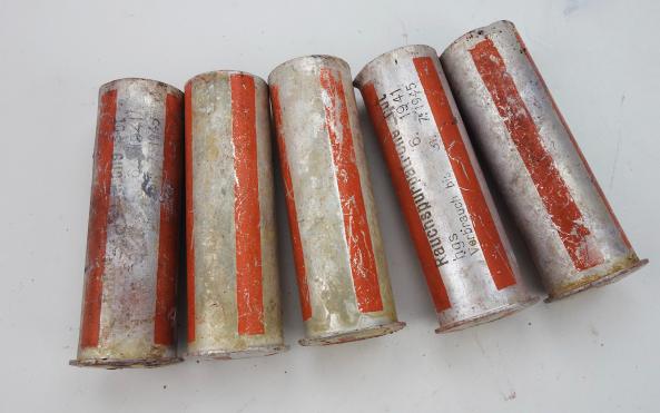 5 Wehrmacht empty Flare Shells (Red) Nice used 5 Wehrmacht empty Flare Shells (Red) “1941” dated nice for display! In used but good condition.